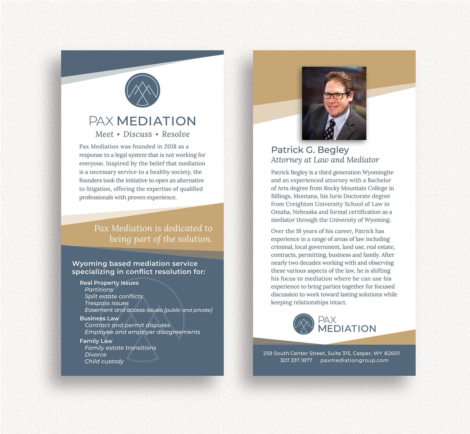 I developed the logo, branding, and graphic design for Pax Mediation, based in Casper and serving the Rocky Mountain Region.