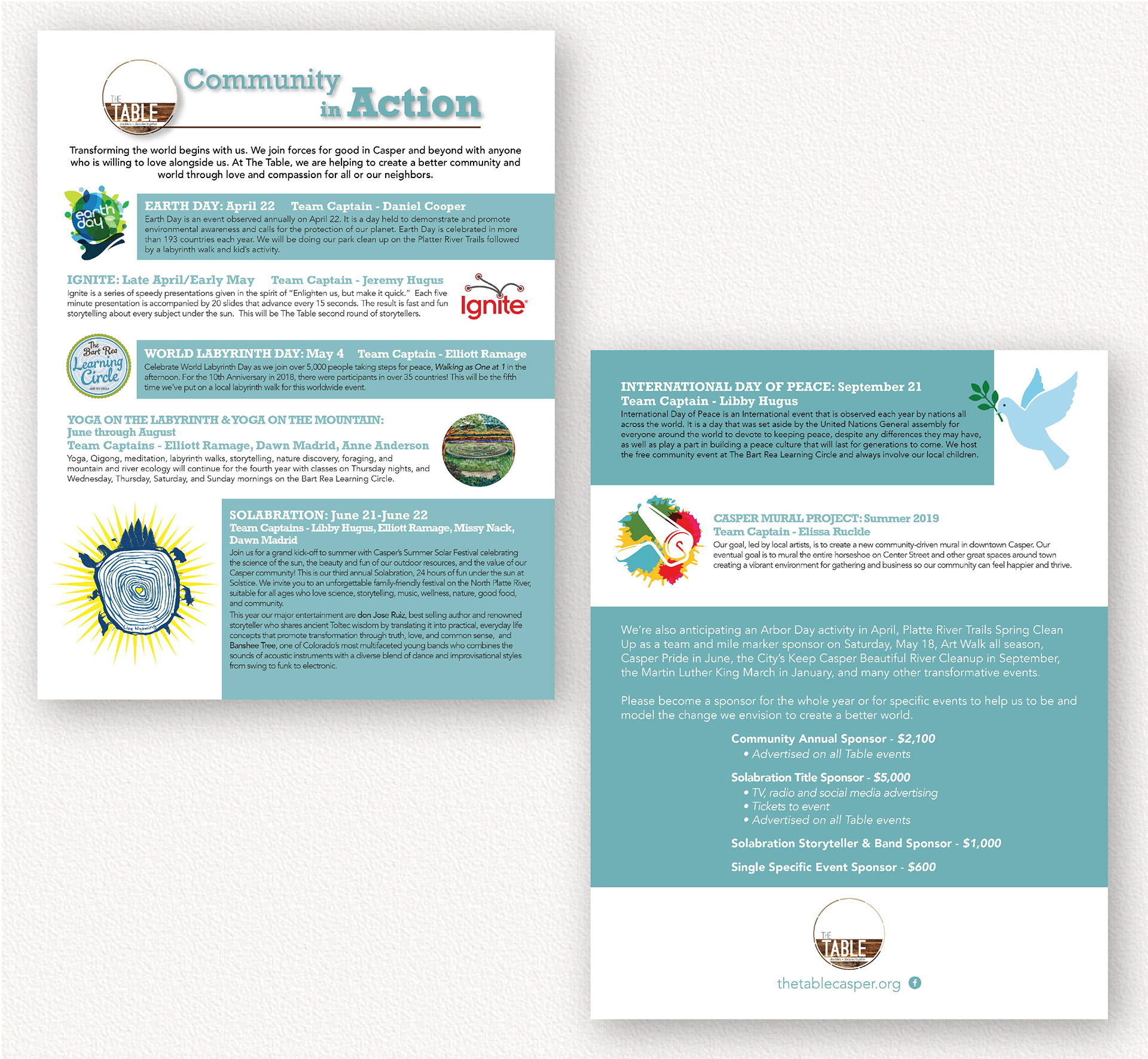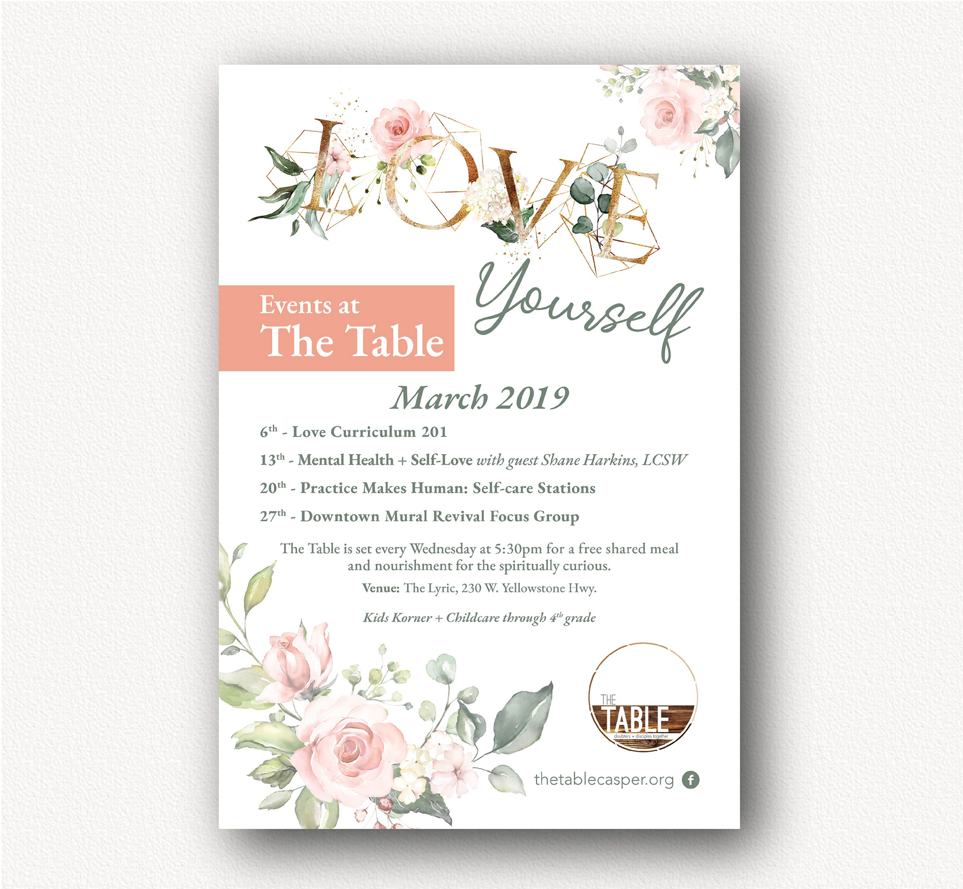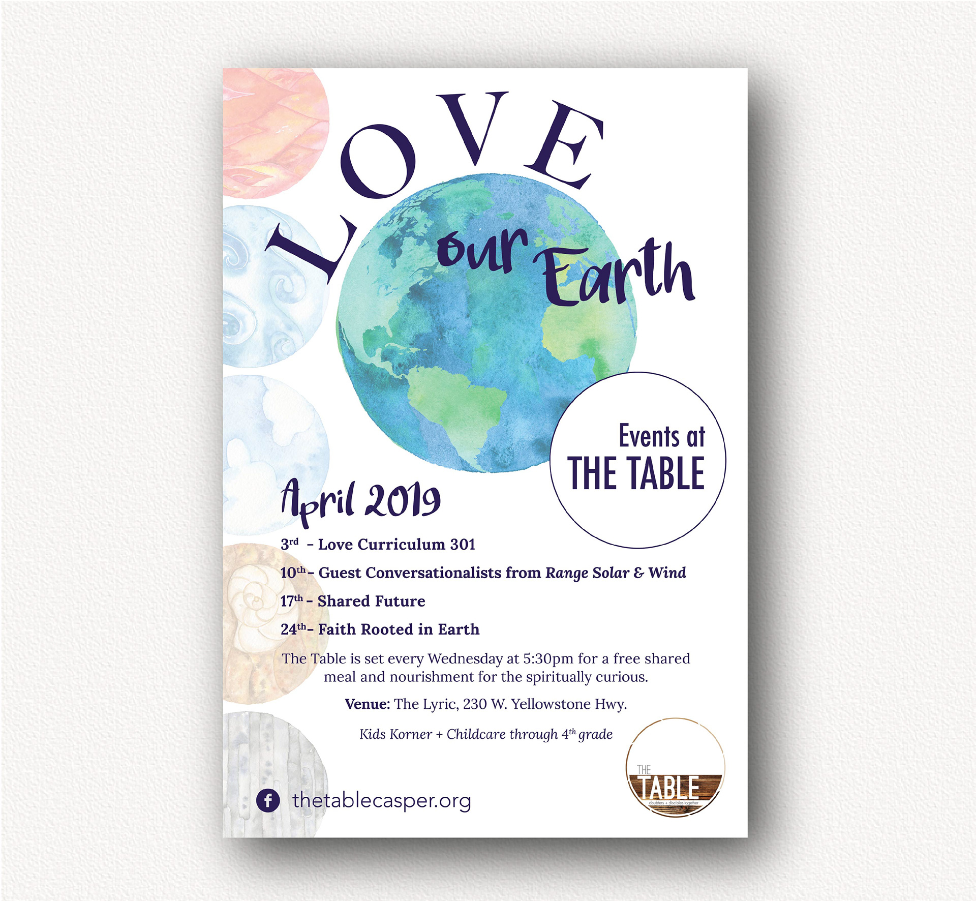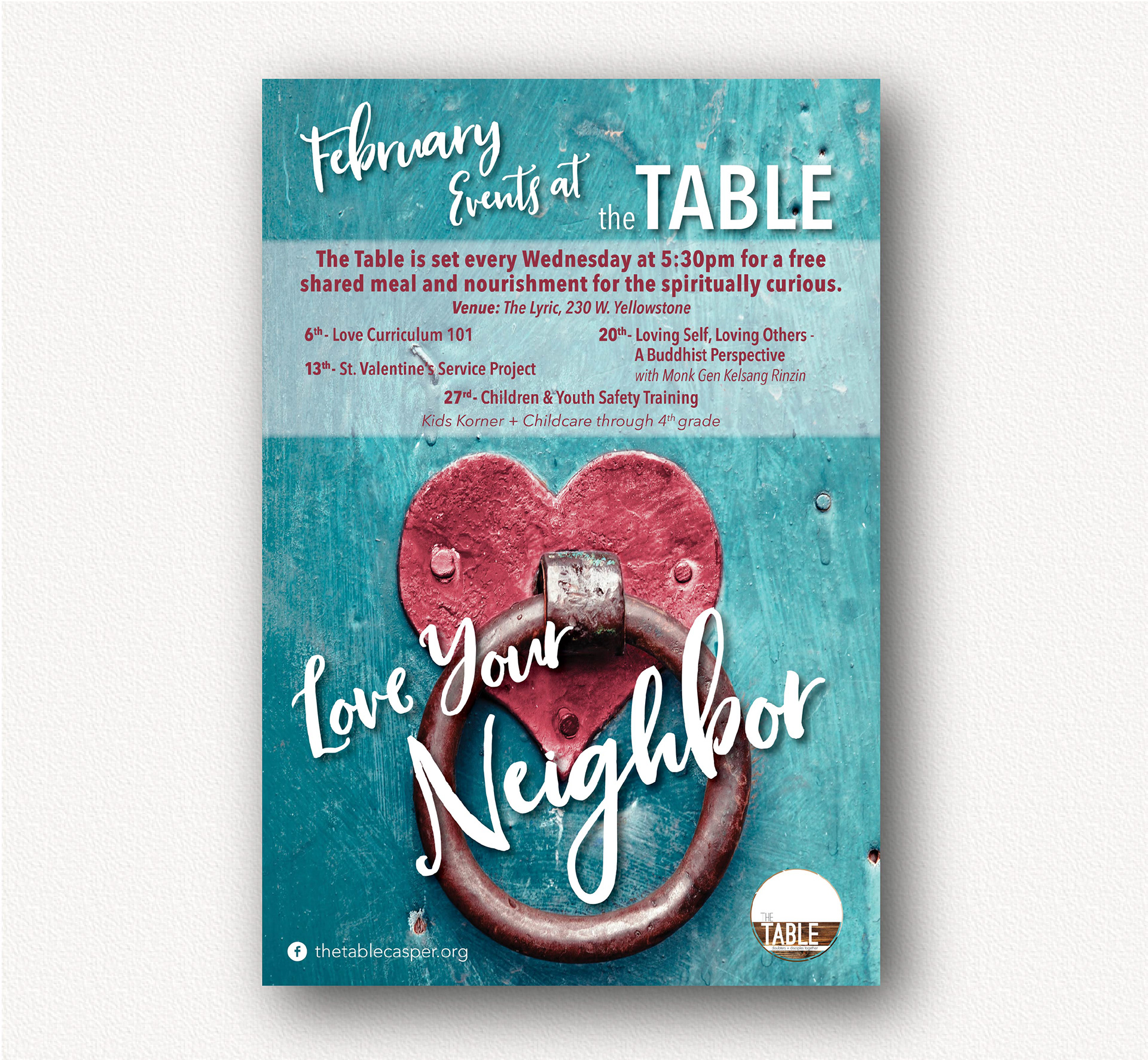 The Table is a Casper area non-profit and church, working to create an inclusive community. I have designed posters around their monthly theme for weekly shared meals and programs.